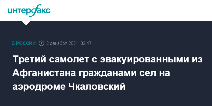 В Минобороны РФ указывали, что для вывоза людей из Афганистана была создана авиационная группировка из трех самолетов военно-транспортной авиации, "которые в кратчайшие сроки вылетели с аэродрома Чкаловский в Кабул".