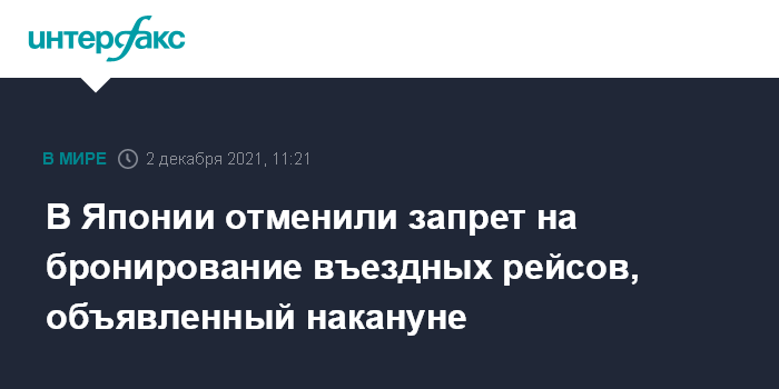 Москва. 2 декабря. INTERFAX.RU - Власти Японии отменили запрет на бронирование прибывающих в страну рейсов, о котором объявили накануне, сообщает в четверг агентство Associated Press.