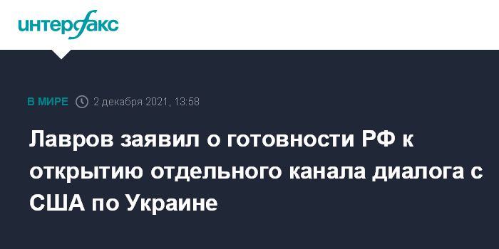 Москва. 2 декабря. INTERFAX.RU - Россия готова к открытию канала диалога с США по Украине, заявил глава МИД РФ Сергей Лавров.