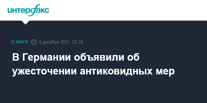 Москва. 3 декабря. INTERFAX.RU - В Германии вводятся ограничения для непривитых жителей, сообщает Deutsche Welle.