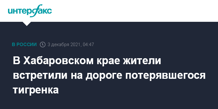 Москва. 3 декабря. INTERFAX.RU - В Хабаровском крае жители встретили краснокнижного тигренка, который без матери вышел на дорогу к людям. Об этом сообщили в центре "Амурский тигр".