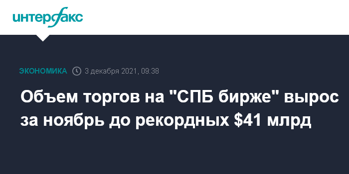 Объем торгов на "СПБ бирже" вырос за ноябрь до рекордных $41 млрд