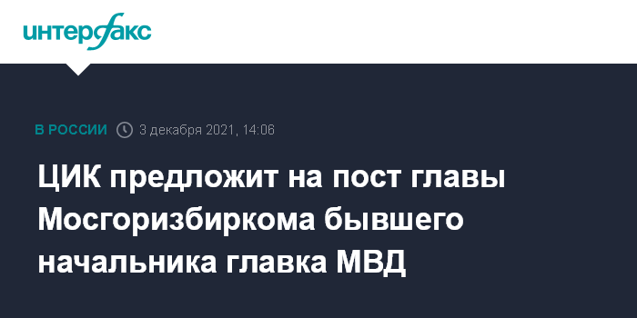 ЦИК предложит на пост главы Мосгоризбиркома бывшего начальника главка МВД