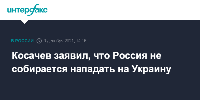 "У нас нет никаких планов нападения на Украину. У нас нет никакой повышенной военной активности у украинских границ. Не ведется подготовки к проведению какой-то наступательной операции", - заявил Косачев в эфире телеканала "Россия-24" (ВГТРК).