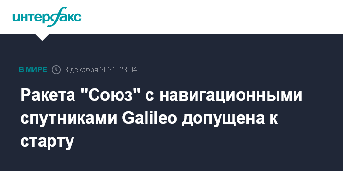 Москва. 3 декабря. INTERFAX.RU - Пуск "Союза" с навигационными спутниками Galileo запланирован на субботу, ракета-носитель допущена к заправке, сообщает "Роскосмос" в твиттере.