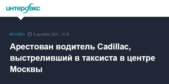 Москва. 4 декабря. INTERFAX.RU - Таганский суд арестовал водителя автомобиля Cadillac, стрелявшего из травматического пистолета в таксиста в центре Москвы, сообщила журналистам представитель столичной прокуратуры Людмила Нефедова. Он заключен под стражу до 3 февраля 2022 года.