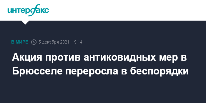 Акция против антиковидных мер в Брюсселе переросла в беспорядки