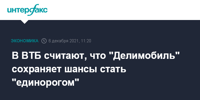 Москва. 6 декабря. INTERFAX.RU - Каршеринг "Делимобиль", IPO которого в начале ноября было отложено из-за рыночных условий, имеет все шансы стать "единорогом", считает первый зампред ВТБ Юрий Соловьев. Он сказал это "Интерфаксу".