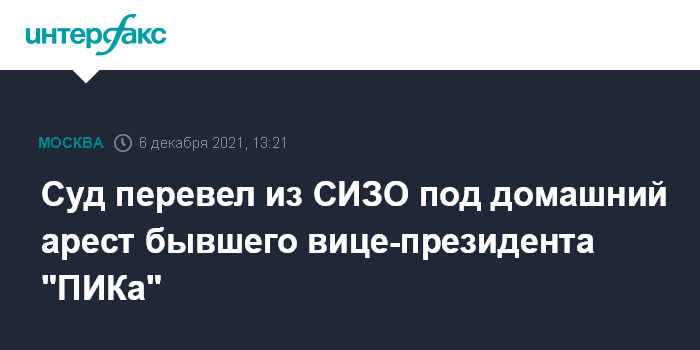 Суд перевел из СИЗО под домашний арест бывшего вице-президента "ПИКа"