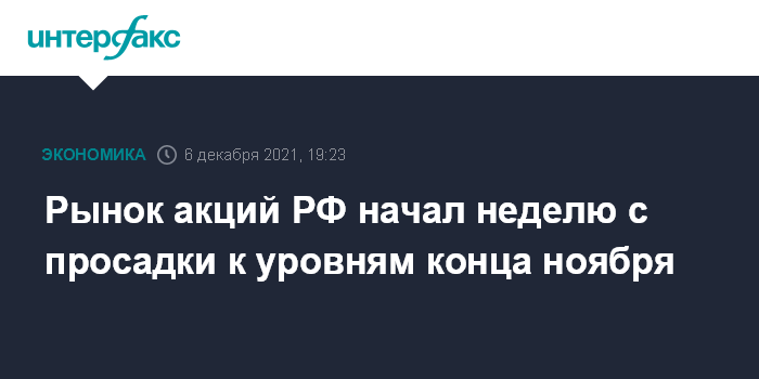 Рынок акций РФ начал неделю с просадки к уровням конца ноября