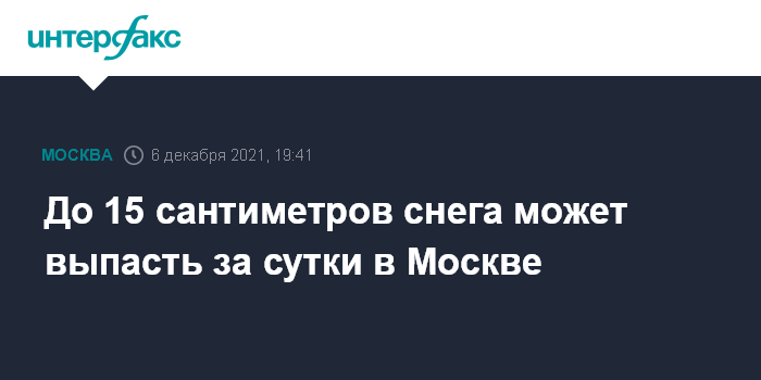 Москва. 6 декабря. INTERFAX.RU - Снегопад, по прогнозам синоптиков, начнется в столице в ночь на вторник, усилится к утру, прирост снега может составить до 15 сантиметров, сообщил заместитель мэра Москвы Петр Бирюков, которого цитирует телеграм-канал комплекса городского хозяйства.