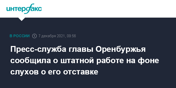 Пресс-служба главы Оренбуржья сообщила о штатной работе на фоне слухов о его отставке