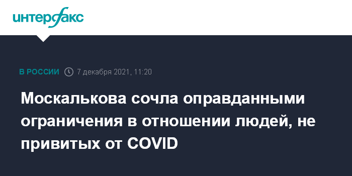 Москалькова сочла оправданными ограничения в отношении людей, не привитых от COVID