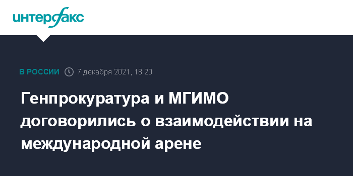 Москва. 7 декабря. INTERFAX.RU - Генпрокурор России Игорь Краснов и ректор МГИМО Анатолий Торкунов заключили соглашение о взаимодействии двух организаций, в соответствии с которым выпускники МГИМО смогут пойти работать в прокуратуру для защиты интересов государства на международной арене, в том числе в ЕСПЧ.