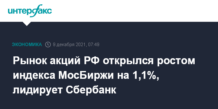 Рынок акций РФ открылся ростом индекса МосБиржи на 1,1%, лидирует Сбербанк