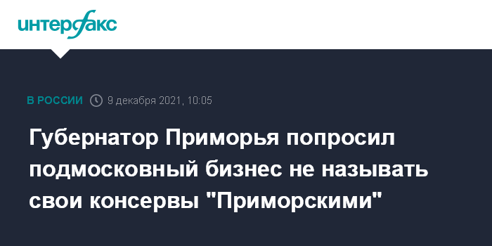 Губернатор Приморья попросил подмосковный бизнес не называть свои консервы "Приморскими"