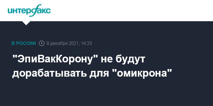 Москва. 9 декабря. INTERFAX.RU - В научном центре Роспотребнадзора "Вектор" не планирует дорабатывать вакцину "ЭпиВакКорона" для новых штаммов коронавируса, она и так работает, заявил "Интерфаксу" гендиректор учреждения Ринат Максютов.