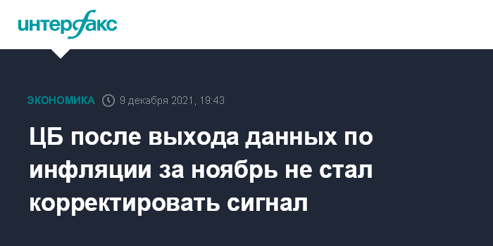 ЦБ после выхода данных по инфляции за ноябрь не стал корректировать сигнал