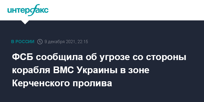 ФСБ сообщила об угрозе со стороны корабля ВМС Украины в зоне Керченского пролива