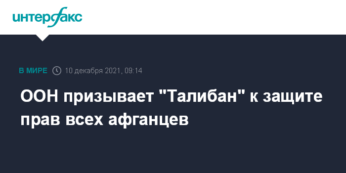 "Отмечая Международный день прав человека, Миссия ООН по содействию Афганистану подчеркивает значение Всеобщей декларации прав человека и ее реальное значение для Афганистана, призывая "Талибан" продемонстрировать свою поддержку прав каждого афганца", - говорится в заявлении, опубликованном на сайте организации.