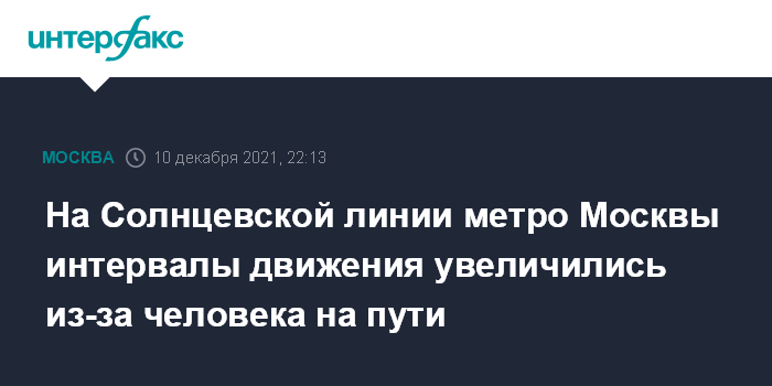 На Солнцевской линии метро Москвы интервалы движения увеличились из-за человека на пути