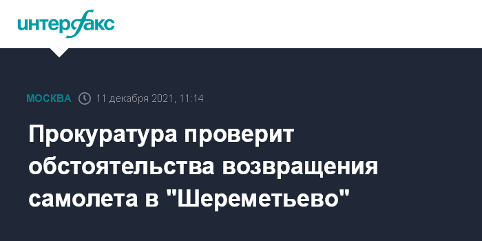 Прокуратура проверит обстоятельства возвращения самолета в "Шереметьево"
