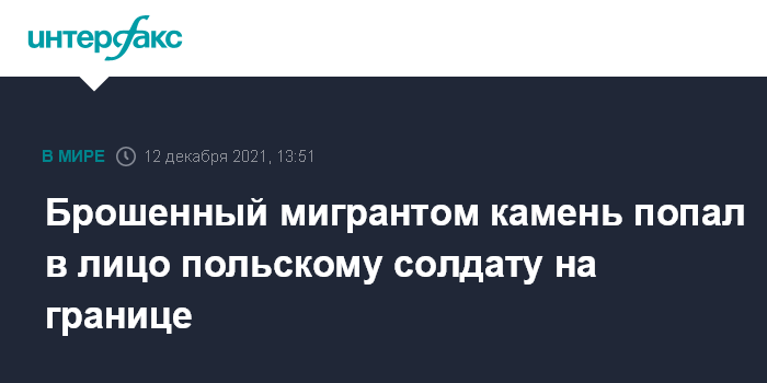 Москва. 12 декабря. INTERFAX.RU - Польский солдат в воскресенье получил травму в тот момент, когда группа мигрантов из 55 человек пыталась прорваться на территорию Польши из Белоруссии, сообщает польская пограничная служба в твиттере.