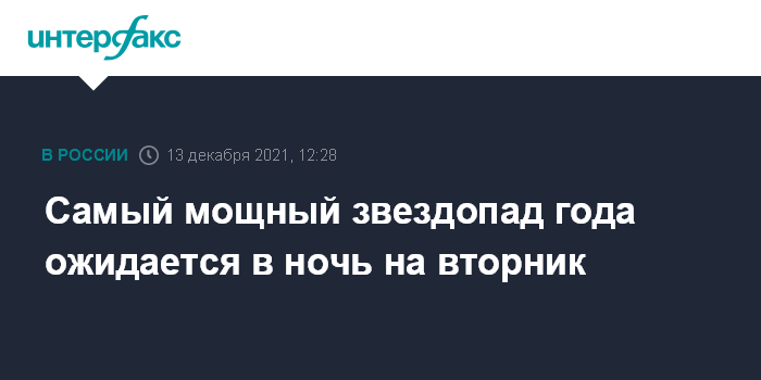Москва. 13 декабря. INTERFAX.RU - В ночь с 13 на 14 декабря в небе ожидается один из самых красивых метеорных потоков года. Об этом сообщили в Московском планетарии.