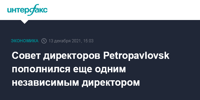 Совет директоров Petropavlovsk пополнился еще одним независимым директором