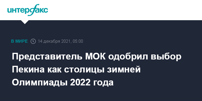 Представитель МОК одобрил выбор Пекина как столицы зимней Олимпиады 2022 года