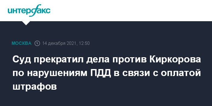 Москва. 14 декабря. INTERFAX.RU - Мировой суд Таганского района Москвы прекратил административные дела в отношении певца Филиппа Киркорова в связи с оплатой штрафов, связанных с нарушениями правил дорожного движения.
