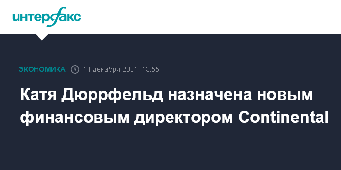 Москва. 14 декабря. INTERFAX.RU - Немецкий производитель автомобильных компонентов Continental AG во вторник назначил Катю Дюррфельд главным финансовым директором компании.