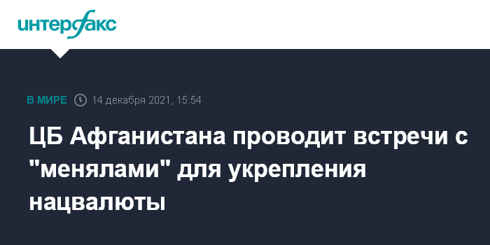 Сформированный захватившим Афганистан движением "Талибан" (запрещенная в России террористическая организация) Совет министров 13 декабря провел в экстренное заседание по укреплению курса национальной валюты. Ведомство постановило принять "решительные меры по борьбе с контрабандой и распространением контрафактной продукции, поддельных "афгани" и другими факторами, отрицательно влияющими на стоимость национальной валюты".