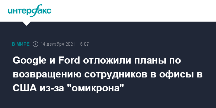 Google и Ford отложили планы по возвращению сотрудников в офисы в США из-за "омикрона"