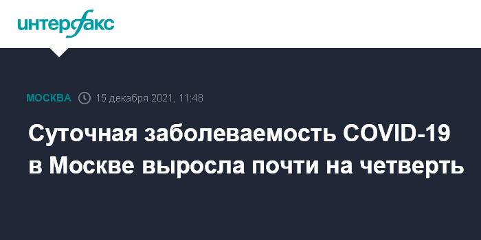 Москва. 15 декабря. INTERFAX.RU - Около 2,5 тыс. случаев COVID-19 выявили в Москве за последние сутки, это почти на четверть больше, чем накануне, следует из данных оперативного штаба по контролю ситуации с коронавирусом.