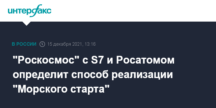 "Роскосмос" с S7 и Росатомом определит способ реализации "Морского старта"