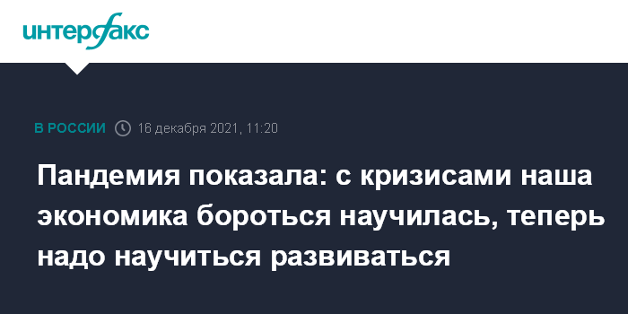 Пандемия показала: с кризисами наша экономика бороться научилась, теперь надо научиться развиваться