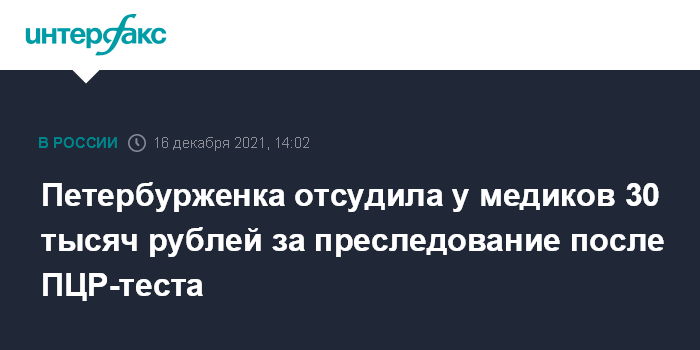 Петербурженка отсудила у медиков 30 тысяч рублей за преследование после ПЦР-теста