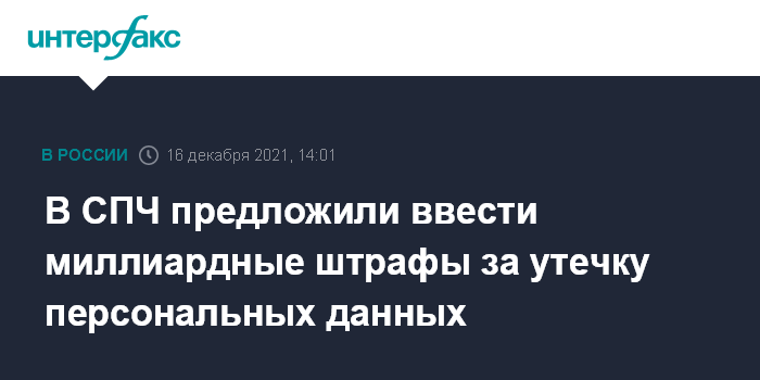 Москва. 16 декабря. INTERFAX.RU - Председатель Совета при президенте РФ по развитию гражданского общества и правам человека (СПЧ) Валерий Фадеев заявил, что за утечку персональных данных нужно наказывать по статьям Уголовного кодекса России и многомиллиардными штрафами.