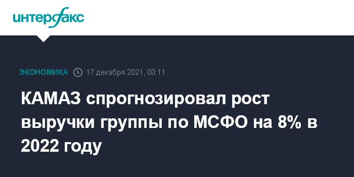 Москва. 17 декабря. INTERFAX.RU - Бизнес-план ПАО "КАМАЗ" на 2022 год предполагает рост выручки группы по МСФО на 8%, до 270 млрд рублей, сообщил журналистам гендиректор компании Сергей Когогин.