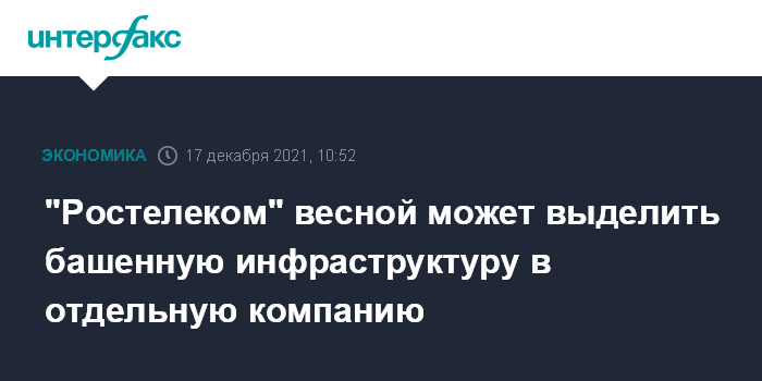 "Ростелеком" весной может выделить башенную инфраструктуру в отдельную компанию
