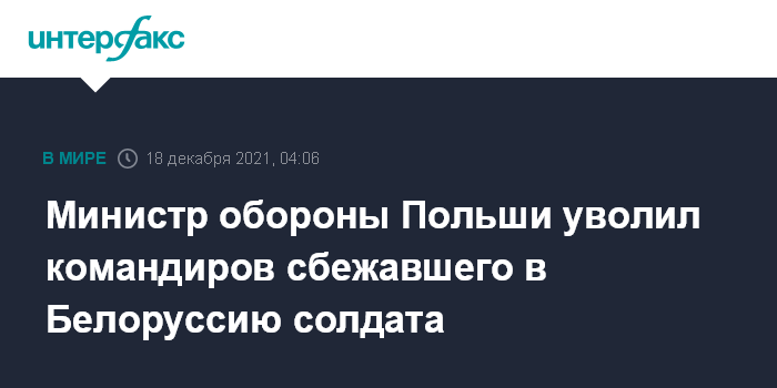 Москва. 18 декабря. INTERFAX.RU - В связи с инцидентом были уволены командиры бежавшего солдата. Об этом пишет польское военное ведомство в твиттере.