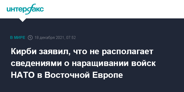 Кирби заявил, что не располагает сведениями о наращивании войск НАТО в Восточной Европе