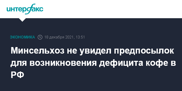 Минсельхоз не увидел предпосылок для возникновения дефицита кофе в РФ