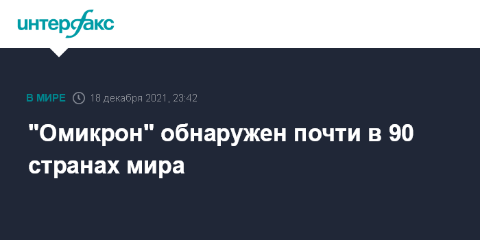 Москва. 18 декабря. INTERFAX.RU - Вариант коронавируса COVID-19 "омикрон" обнаружен уже в 89 странах мира, сообщает The Guardian со ссылкой на Всемирную организацию здравоохранения (ВОЗ).