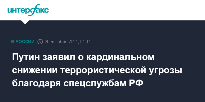 Путин заявил о кардинальном снижении террористической угрозы благодаря спецслужбам РФ