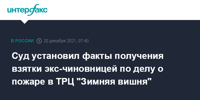 Суд установил факты получения взятки экс-чиновницей по делу о пожаре в ТРЦ "Зимняя вишня"