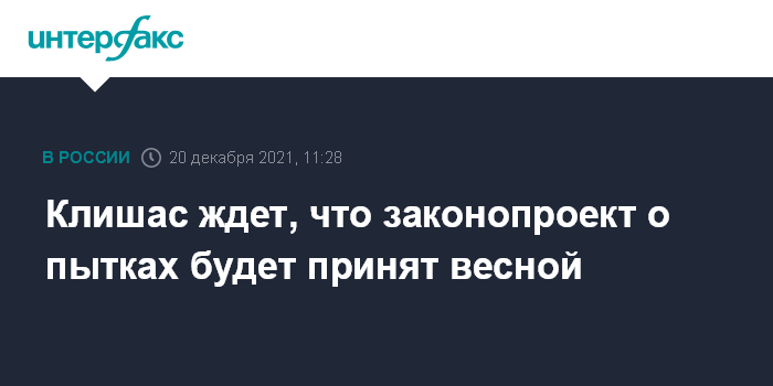 Москва. 20 декабря. INTERFAX.RU - Один из авторов внесенного в Госдуму законопроекта об ужесточении наказания за пытки, сенатор Андрей Клишас сказал, что полагает, что поправки могут быть приняты уже в весеннюю сессию.