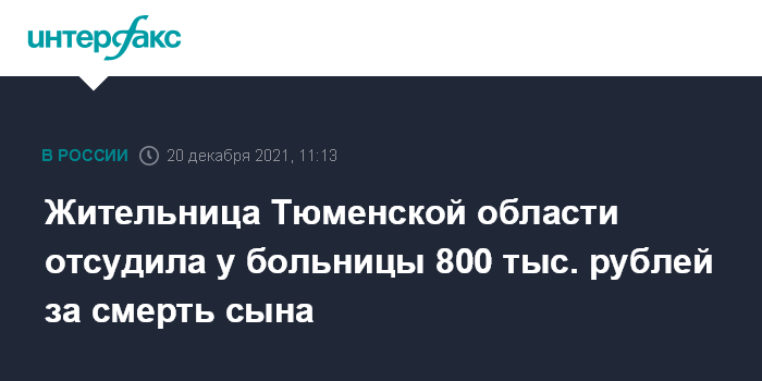 Москва. 20 декабря. INTERFAX.RU - Суд в Тюменской области частично удовлетворил иск местной жительницы о компенсации морального вреда в связи со смертью ее сына из-за некачественно оказанной медицинской помощи, сообщает в понедельник объединенная пресс-служба судебной системы региона.