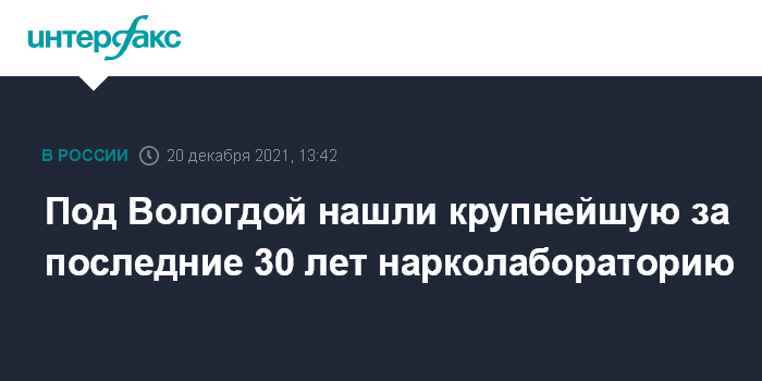 Москва. 20 декабря. INTERFAX.RU - Крупнейшую в регионе нарколабораторию ликвидировали в Вологодской области, изъято 15 кг мефедрона, спецоборудование, прекурсоры, сообщила в понедельник официальный представитель МВД России Ирина Волк.